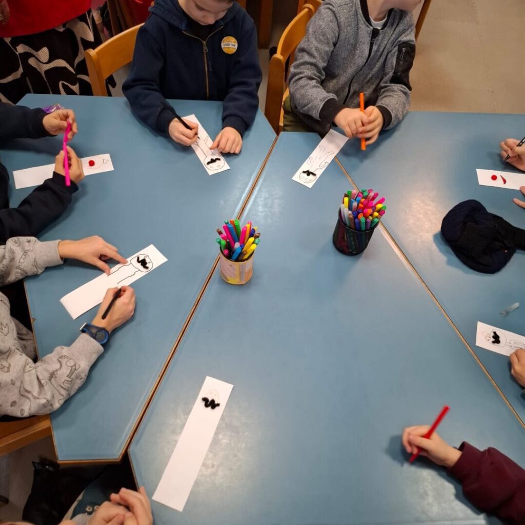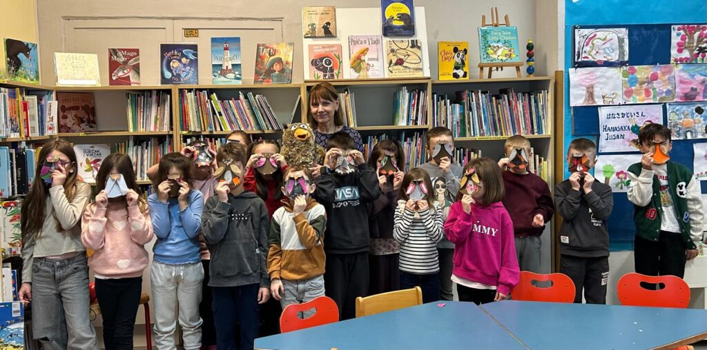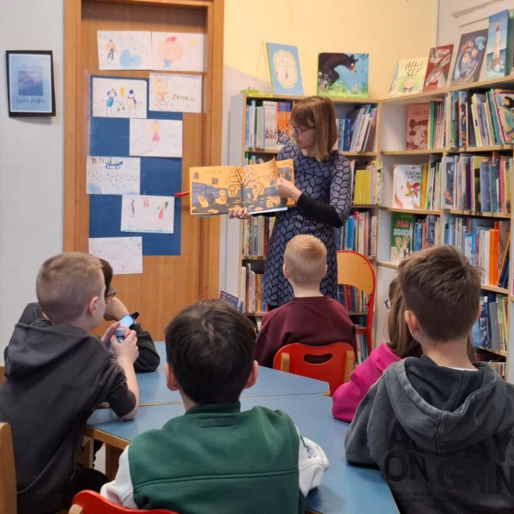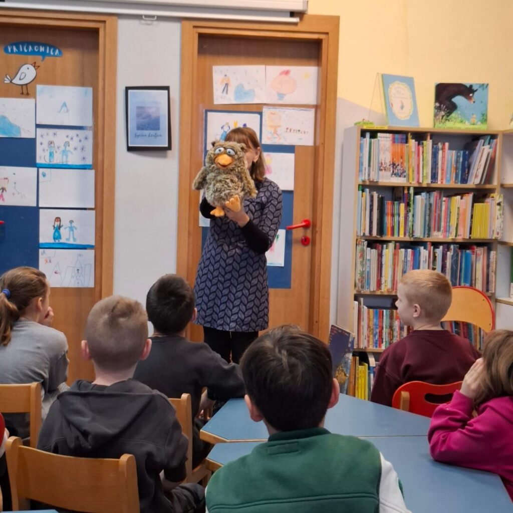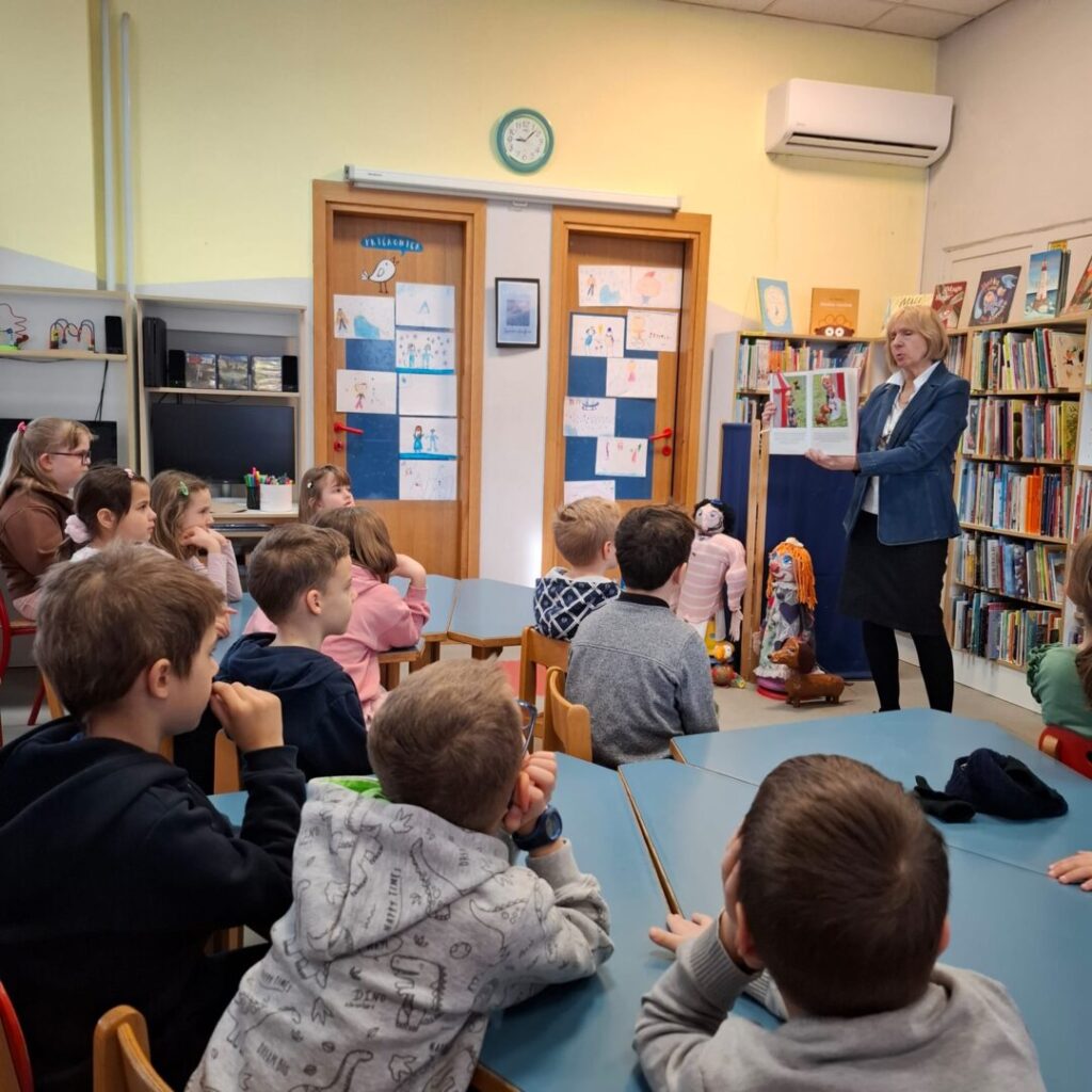 Učenici 1.a razreda poslušali su priču Ponoćna knjižnica koja govori o važnoj ulozi knjižničara i knjižnica koju imaju u zajednici. Knjižnica iz priče otvara se u ponoć, a zatvara u zoru, a vodi je djevojčica sa svoje tri pomoćnice – sovice, koje pomažu životinjama pronaći savršenu knjigu za svaku od njih. Nakon čitanja priče učenici su izrađivali sovice.