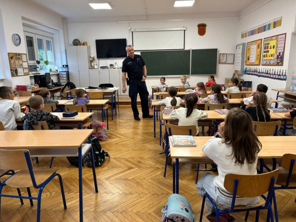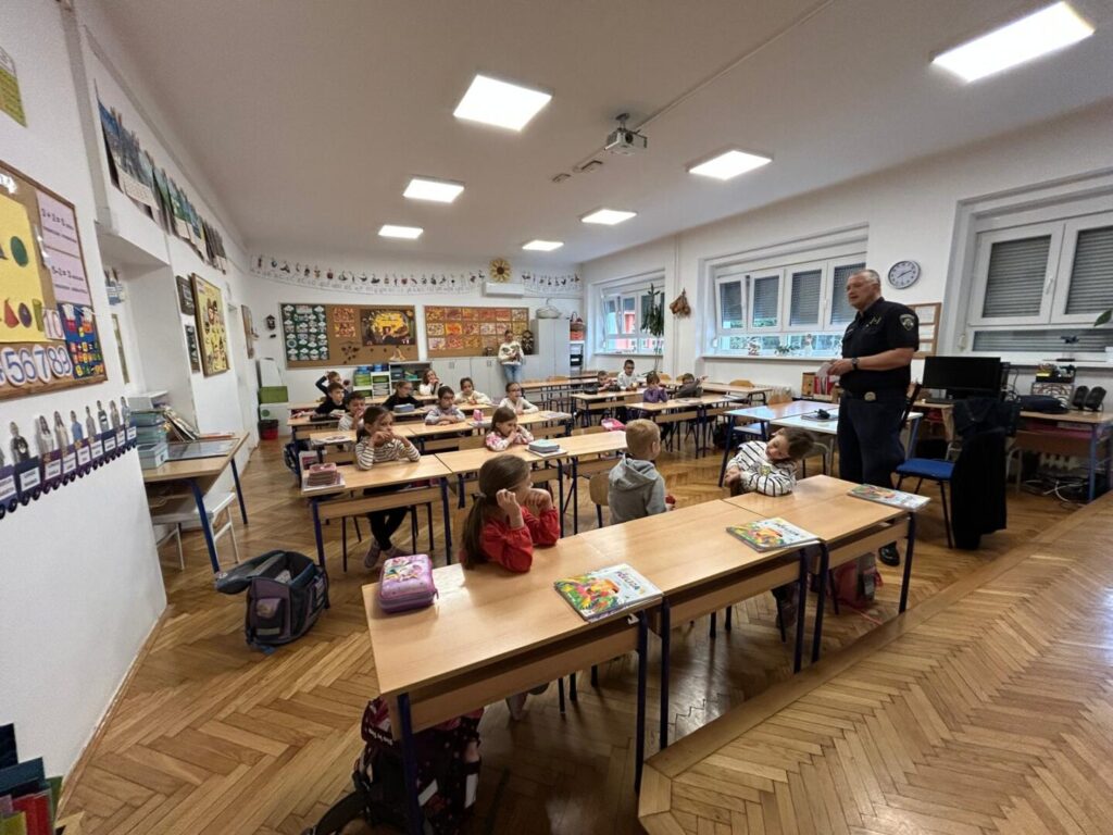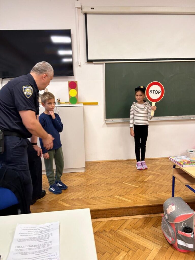 Naš 1.a razred posjetio je kvartovski policajac i održao kratko predavanje o prometnim pravilima i sigurnosti djece. Učenici su imali priliku ponoviti osnovna pravila ponašanja u prometu te naučiti koje važne telefonske brojeve treba nazvati u slučaju opasnosti ili nezgode.