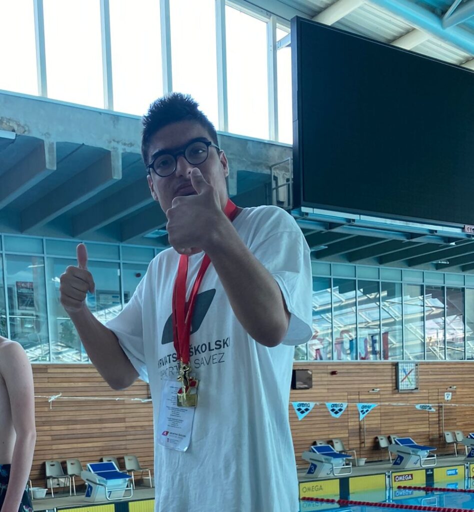 Učenik naše škole, Fran, ostvario je izniman sportski uspjeh osvojivši čak dvije zlatne medalje u plivanju na 25 metara – u disciplinama leđno i prsno. U snažnoj konkurenciji pokazao je izvanrednu brzinu, upornost i sportski duh te zasluženo stao na najviše postolje u obje discipline.