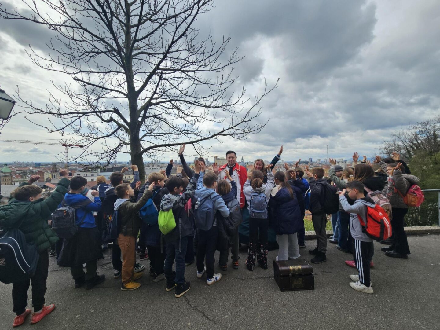 3.a i 3.b jučer su išli u obilazak Zagreba sa Zagrebačkim ringešpilom. Kiša im je pokušala pokvariti planove, ali brzo je shvatila da protiv ove ekipe nema šanse. Oblaci su se razbježali i ubrzo je zasjalo sunce! Kroz zagonetke i priče upoznali su groficu zaljubljenu u bana, Mandu s Manduševca, Mariju Jurić Zagorku i samog bana Jelačića.