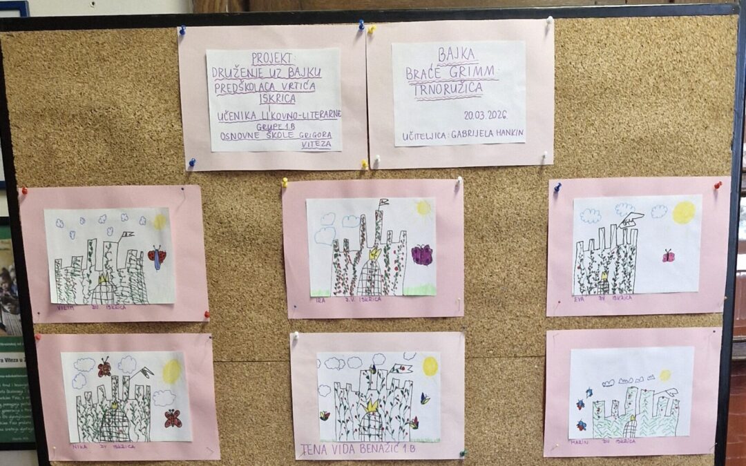 U petak 20.03.2026. u učionici 17 održalo se DRUŽENJE UZ BAJKE predškolaca vrtića Iskrica i učenika 1b. Likovno-literarne grupe.