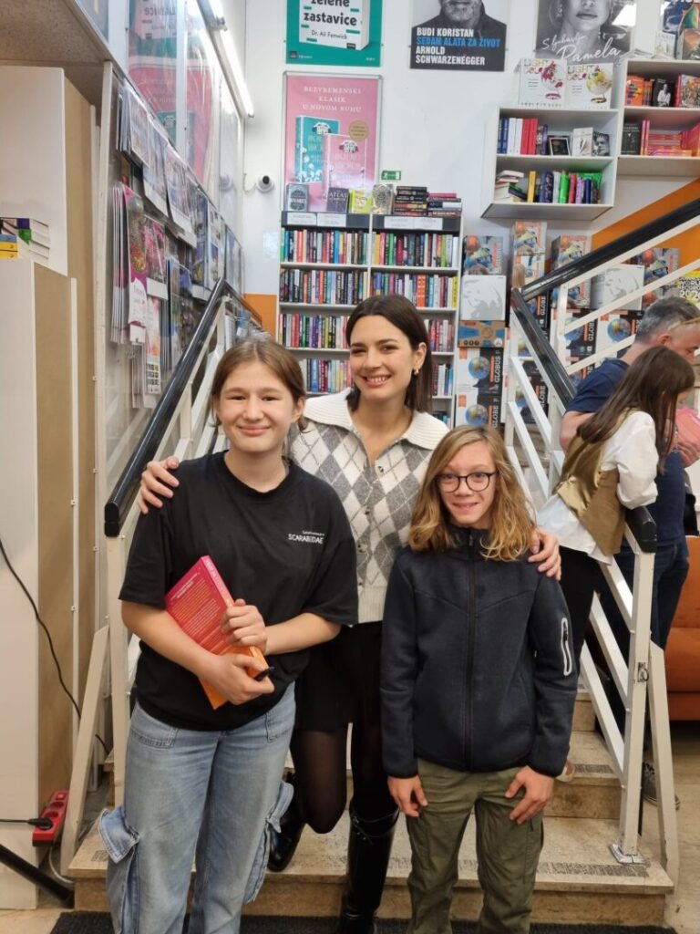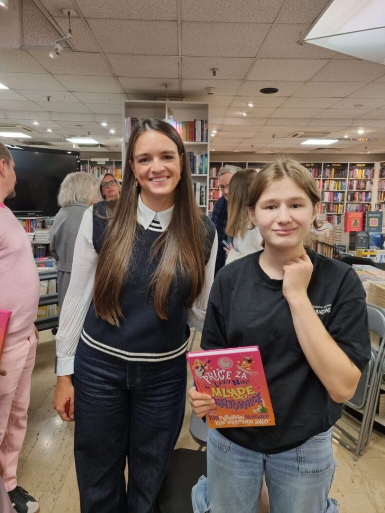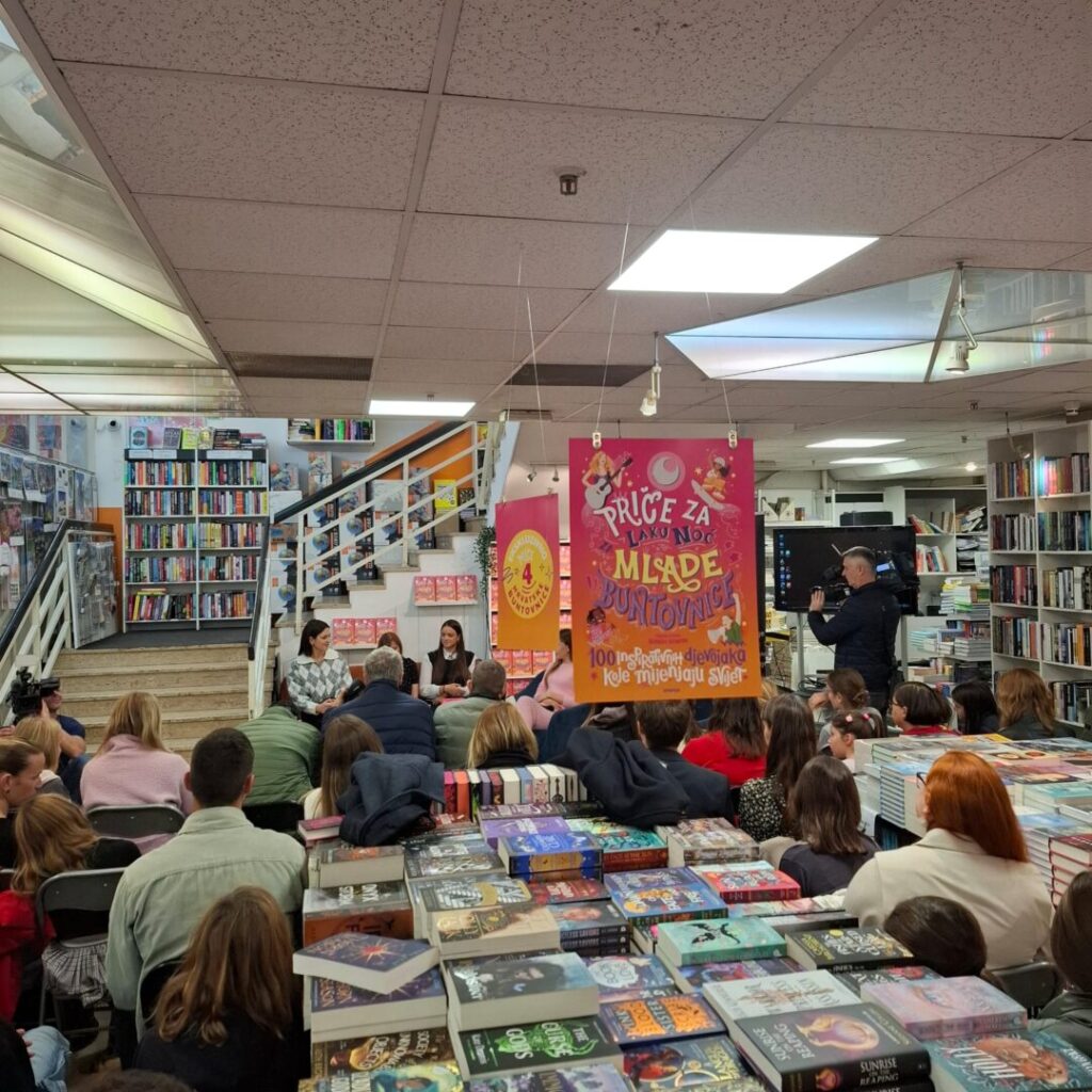 Dio učenika 7.b i 8.a razreda, u pratnji svojih razrednika i knjižničarke, posjetili su promociju četvrtog nastavka knjige Priče za laku noć za mlade buntovnice u knjižari Znanje Bookshop.