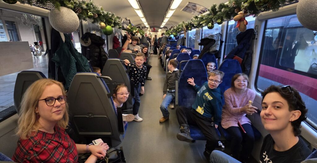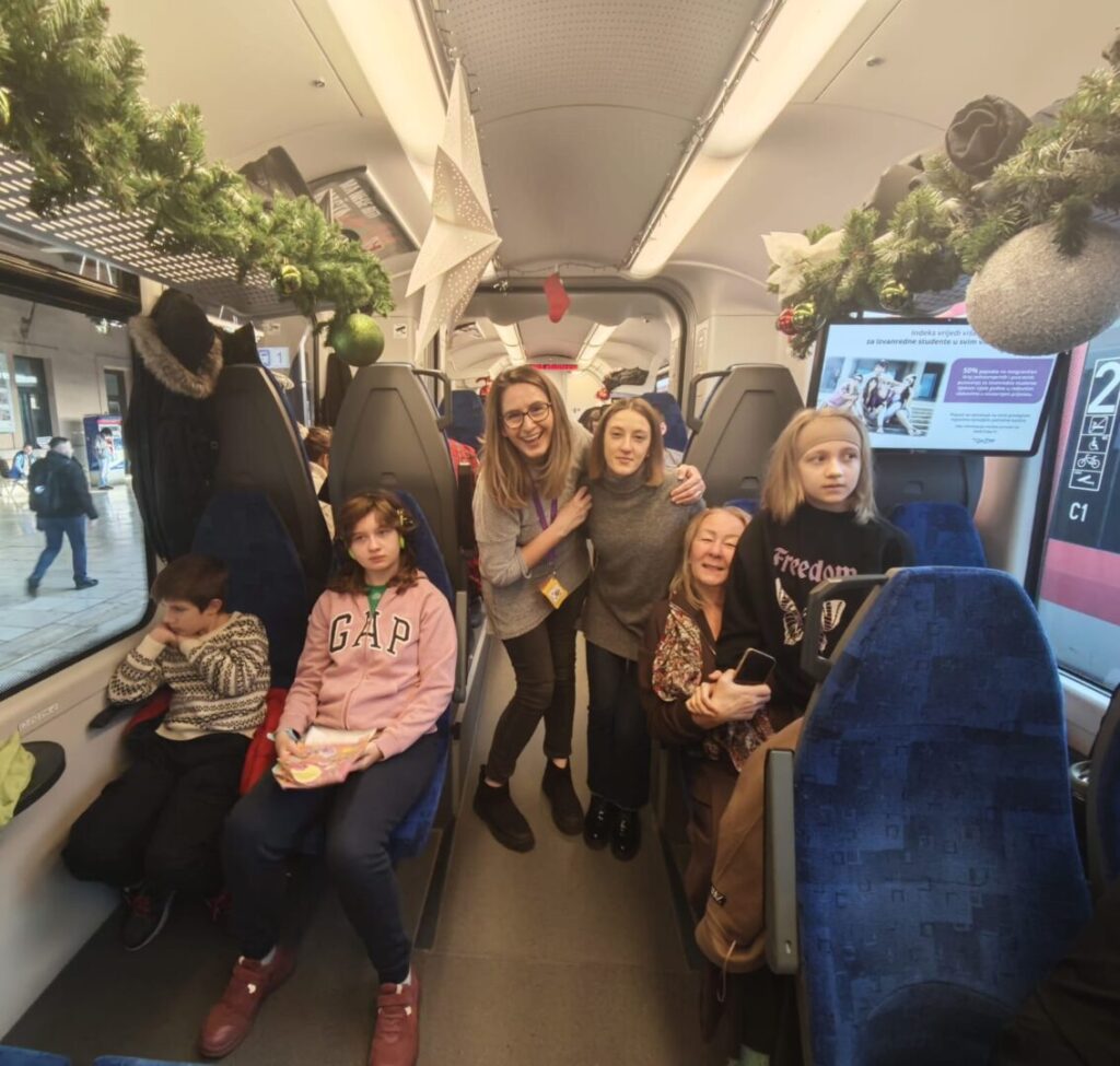 Atmosfera u vlaku bila je prava božićna — pjevalo se, plesalo i smijalo, a raspoloženje je raslo iz trenutka u trenutak. Na kraju su svi složno zaključili kako je vožnja trajala prekratko, jer bi u takvom veselom i čarobnom društvu rado ostali još malo duže.