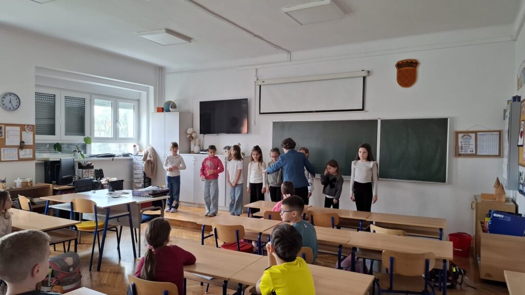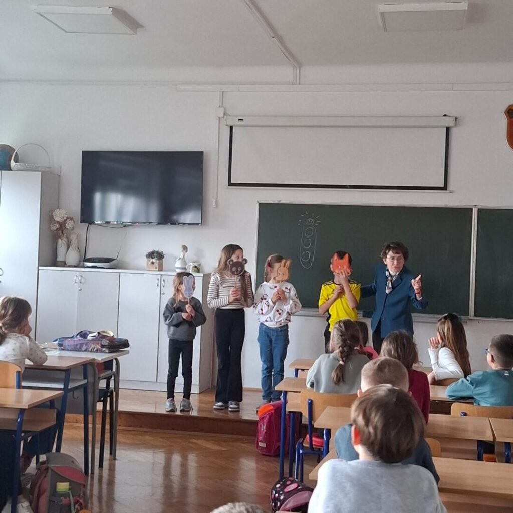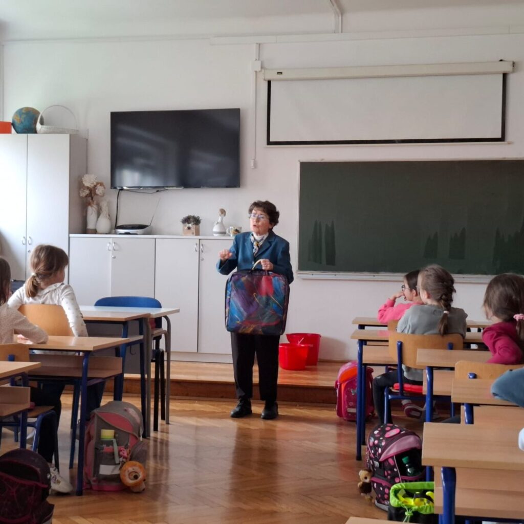 Naša gošća učenicima je predstavila svoju posebnu torbicu u kojoj nosi brojne rekvizite koji joj služe za pripovijedanje. Tako su učenici imali priliku vidjeti flautu, violinu, harmoniku, pa čak i klavir, ali i upoznati opernu pjevačicu, mišiće i jednu mačku koji su oživjeli kroz priču.